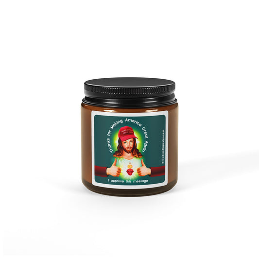 Jesus & MAGA Hat - Scented Soy Candle (Multi-Size, Amber Jar)